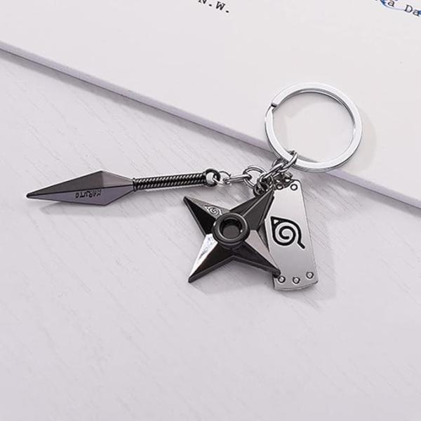 Ninja-inspired metal keychain with shuriken & kunai charms